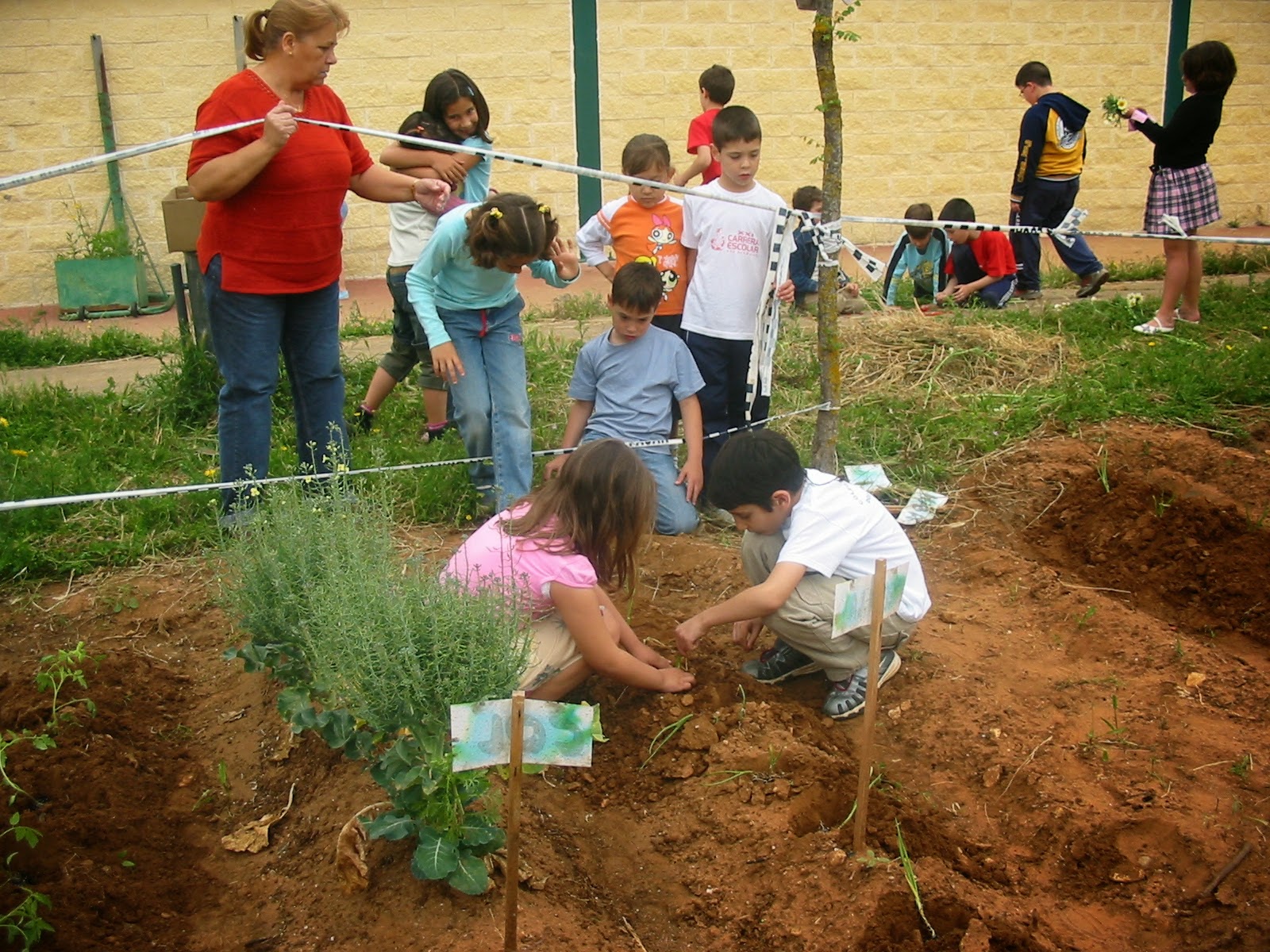 b) Mesas de cultivo: son básicamente mesas-maceta, donde se puede cultivar y fácilmente controlar multitud de hortalizas. La gran ventaja es su versatilidad para instalar. Podemos instalarlas en patios, terrazas y otros lugares pues generan muy pocos residuos y aprovechan muy bien el recurso hídrico. En nuestro caso, hemos reciclado varios chasis de mesas grandes del colegio para fabricarle un vaso donde